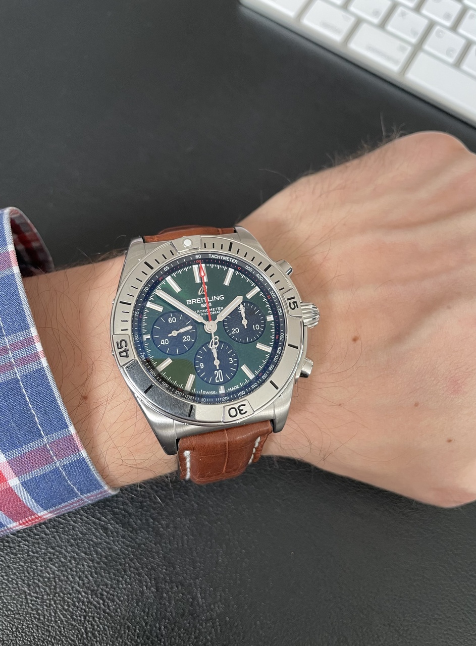 . Пересадил на зиму на крокодила , сочетание цвета радует , Зеленый стал как будто ярче когда браслет не забирает внимание на себя .