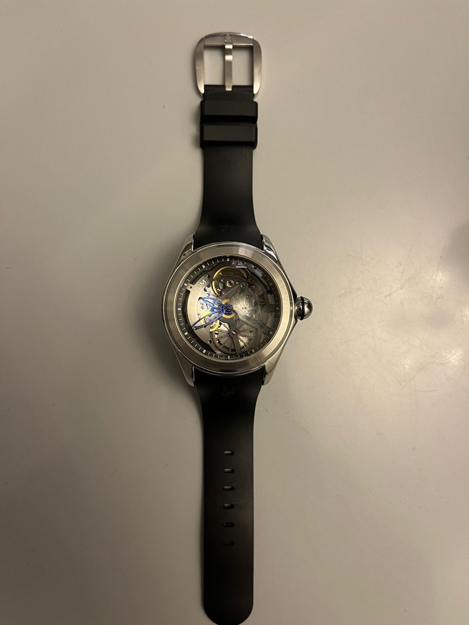 Продаются Corum Bubble Skeleton 47, в комплекте коробка. Часы на каучуке, со согласованию могу отдать оригинальный кожаный ремешок.