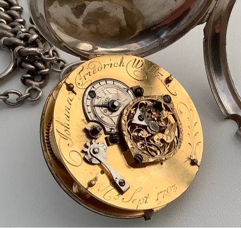 Достались такие часы. Центральная секундная стрелка, цилиндровый спуск, на плате выгравирована дата: «5 сентября 1793». Вопрос к уважаемому сообществу. Это поздняя переделка с шпиндельного спуска или изготовлены изначально с цилиндровым?