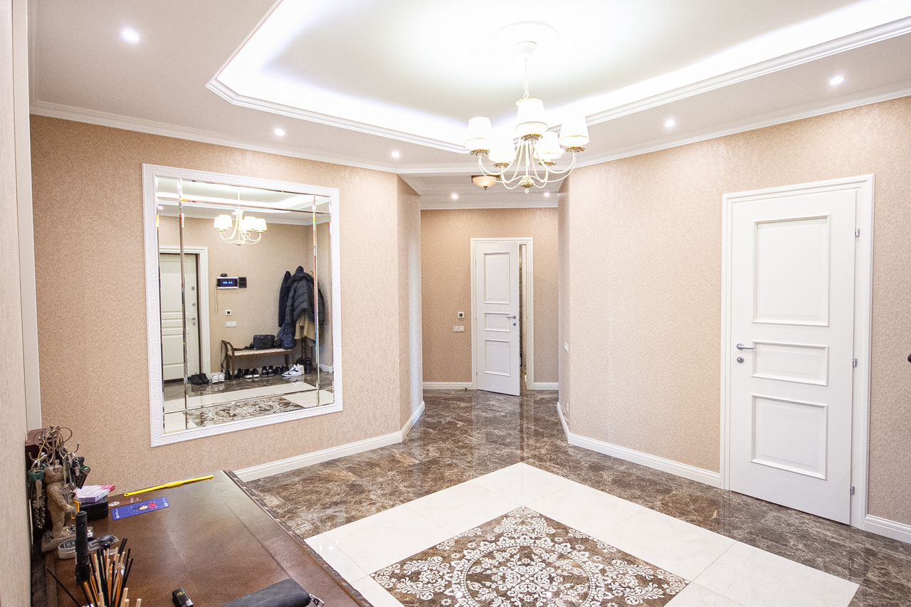 Ремонт выполнен из качественных дорогих материалов. Высокие потолки квартира очень светлая и уютная. Прекрасное предложение по цене и качеству!