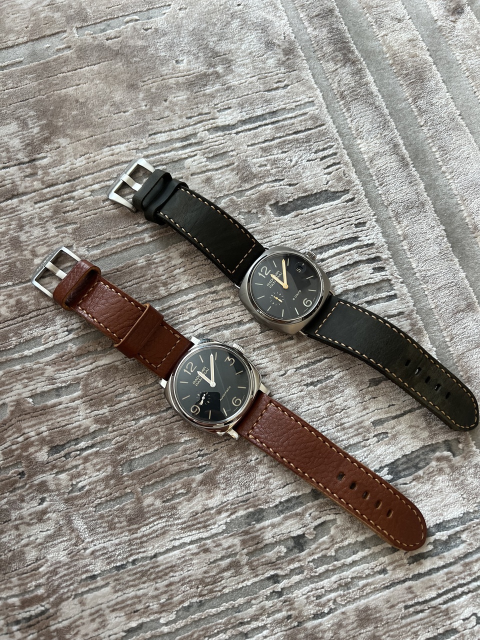 Доброго времени суток . Мало тем с обзорами часов , поэтому решил сделать обзор своих двух Радиомиров , которых считаю эталонными в размере 45мм . Про тру и не тру тем было много , идеального Пама нет и не будет , поэтому представляю на суд зрителей Пам 00346 и Пам 00572. Первые - классический Радик с проволочными ушками, табачный цифер , сэндвич , 8 дней на ручке и запас хода сзади . Вторые - Радиомир в корпусе 1940, автомат , три дня , сэндвич , современный тонких мех со смещенным ротором автоподзавода , лаконичный цифер без даты. Носятся часы немного по разному , на мою руку 17,5 подходят по размеру на мой взгляд идеально. Если обзор оказаться кому то полезен - буду очень рад. Каждый найдет свой Пам!!