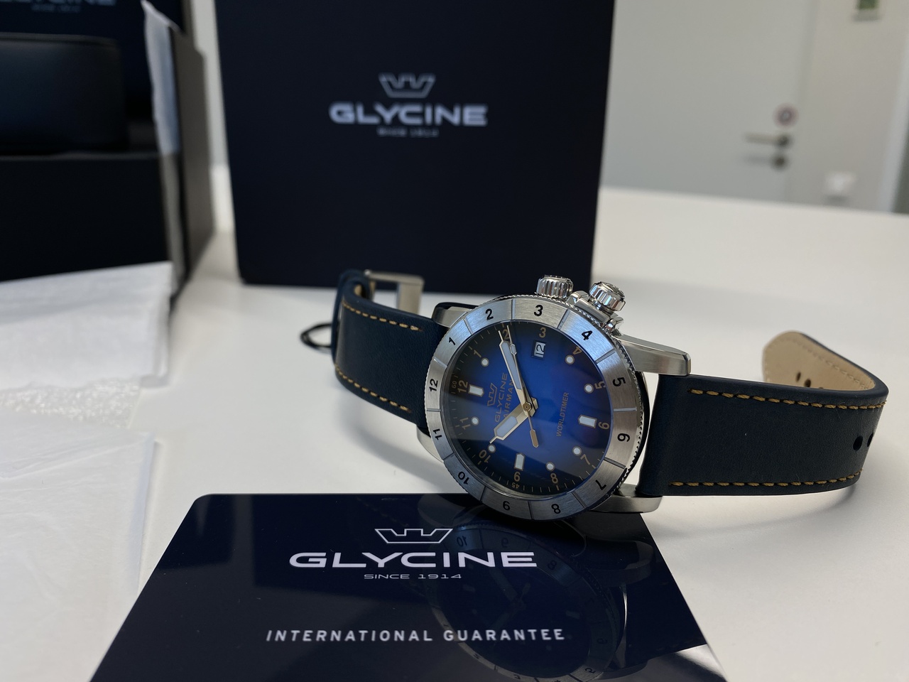Часовой форум Watch.ru - Показать сообщение отдельно - Glycine Airman - Синие, 42mm, 100M, GMT, вращающийся безель сапфир с антибликом, БОЛЬШАЯ дата. Единственные на Маркете! Супер-прайс!