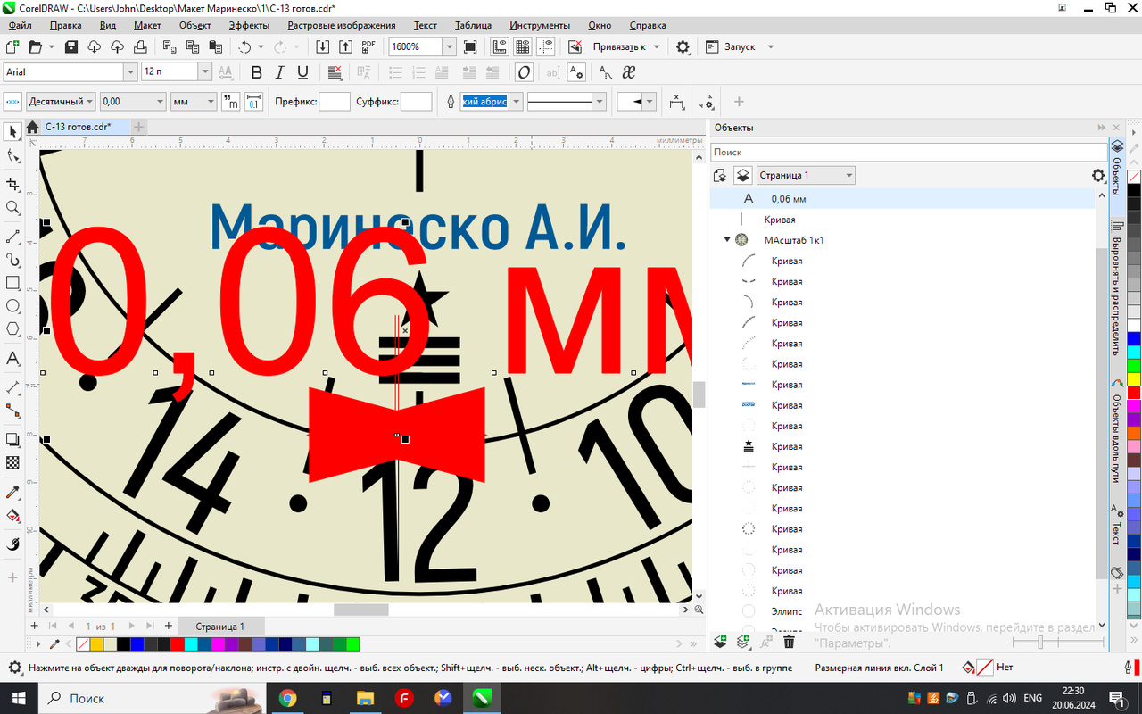 Проверил...Да, завал есть...Не знаю как так получилось. Пробовал искаверкать цифру "12" с таким же шрифтом, не получилось, редактирует прямолинейно...Не знаю...Может повернул случайно в процессе размещения...Не знаю...Обидно...