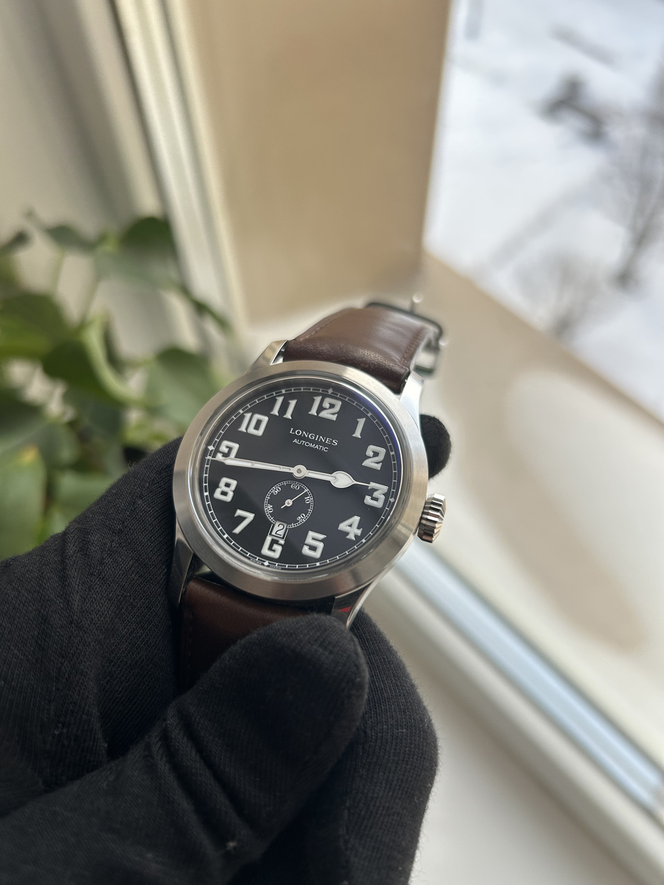 Все безупречно и гармонично - черный цифер, топовый ETA калибр, малая секунда, указатель даты на 6 часов, железная дорога и отличный люм на крупных арабских цифрах и стрелках.