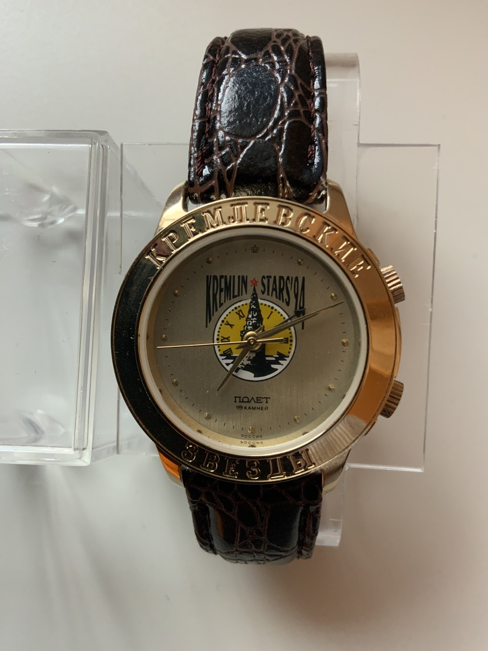 И в честь этого события были выпущены наручные механические позолоченые часы «Полёт» «Кремлевские звезды» с механическим сигналом. А на задней крышке часов красуется логотип компании Intel. Конечно, в данном случае, внутри часов нет известного на весь мир процессора, они выступали лишь спонсором. Прошло целых 30 лет. И в нашей истории сохранились одни из самых известных советских часов Полёт с гордым логотипом Intel на крышке механизма.