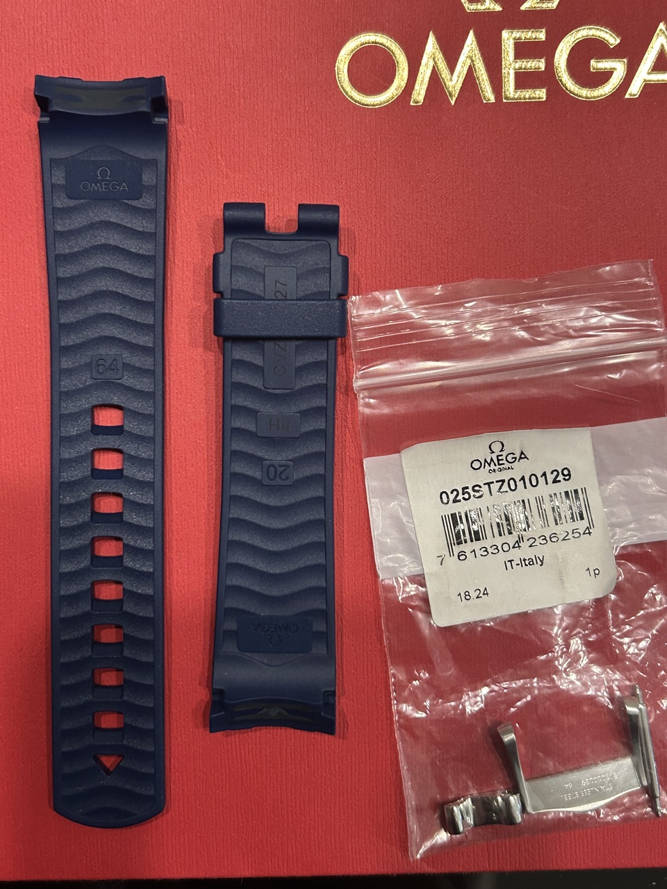 В продаже каучук для Omega SMP 42 мм с простой застежкой синего и зеленого цвета
