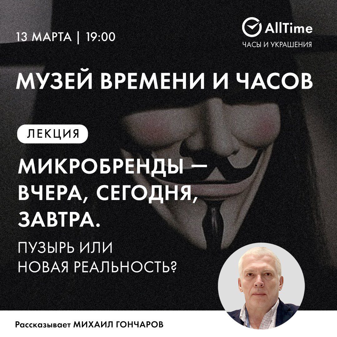 Музей Времени и Часов приглашает 13 марта (четверг) в 19:00 на лекцию Михаила Гончарова «Микробренды – вчера, сегодня, завтра. Пузырь или новая реальность?».