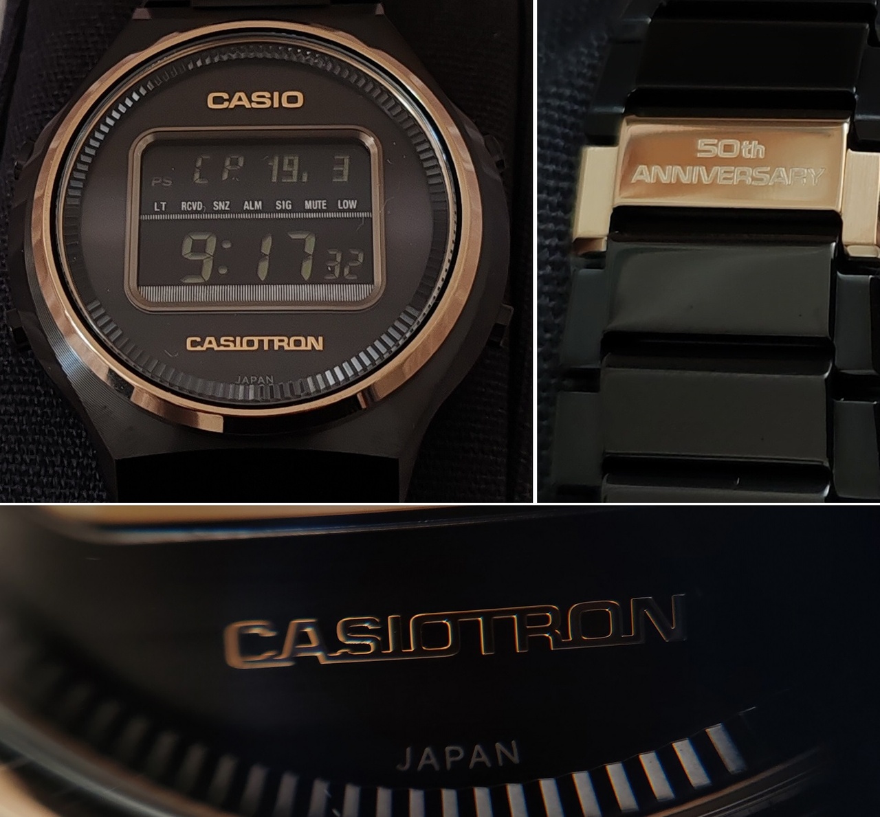 В 2024 вышло несколько юбилейных Casiotron TRN-50. Первый вариант — лимитка из 4000 экземпляров — был ближе всего по дизайну к оригинальным часам. Потом были часы в юбилейной серии Sky and Sea в сине-золотых цветах…