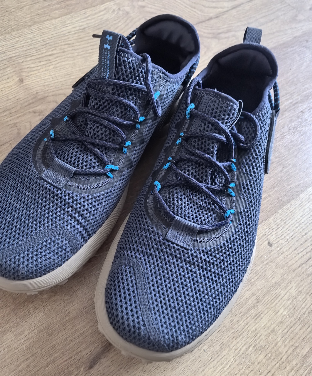 Новые, но идут без коробки. Размер по факту 44, на длину стопы 29 см, но с учетом фиксаторов могут пойти и на длину 28,5 с небольшим запасом. Полнота средняя, но могут пойти и на широкую стопу. Шнуровка одна из удобнейших. На тепло идеально, подошва отлично отрабатывает любую поверхность, при этом достаточно мягкие. Хорошая вентиляция, внешне выглядят интересно и при ходьбе не заваливаются. Топ модель от UA
