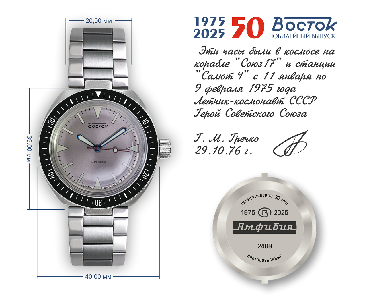 На циферблате написание "Восток" и "17 камней" выполнено и позиционировано так же, как в оригинале.