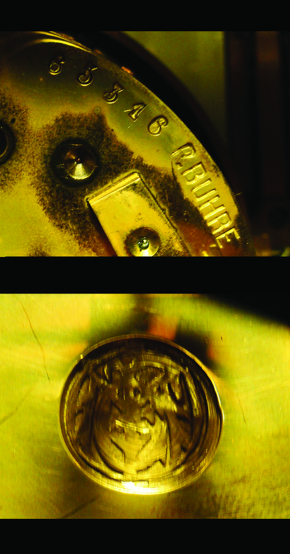 На циферблате надпись затерта. Можно различить буквы "Buhr"
