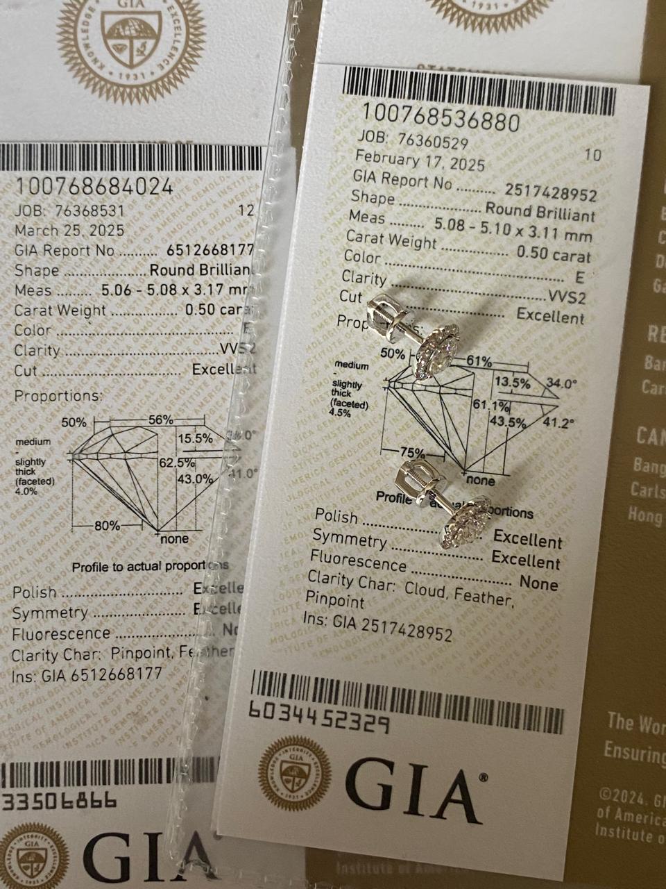 СЕРЬГИ-ПУССЕТЫ С БРИЛЛИАНТАМИ ПО 0,50 карат E/VVS2 "ОРЕОЛ" (сертификаты GIA)!