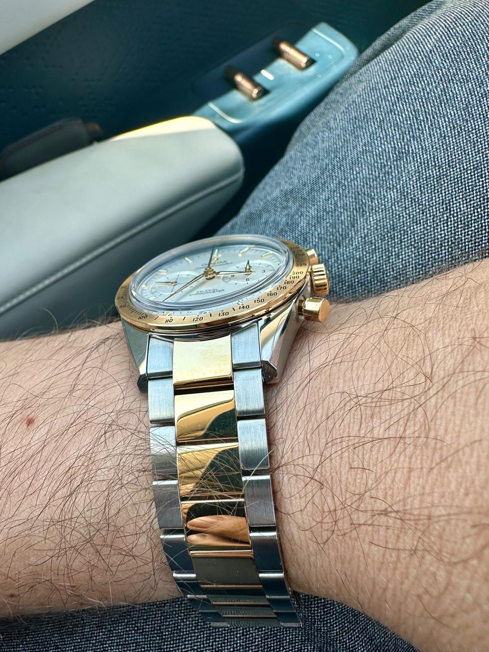 Спустя 2 года поисков по счастливой случайности в бутике в Алмате были показаны из закромов сейфа и сразу куплены. Спрашивал есть ли 40,5 мм с синим циферблатом, а вынесли искомую модель