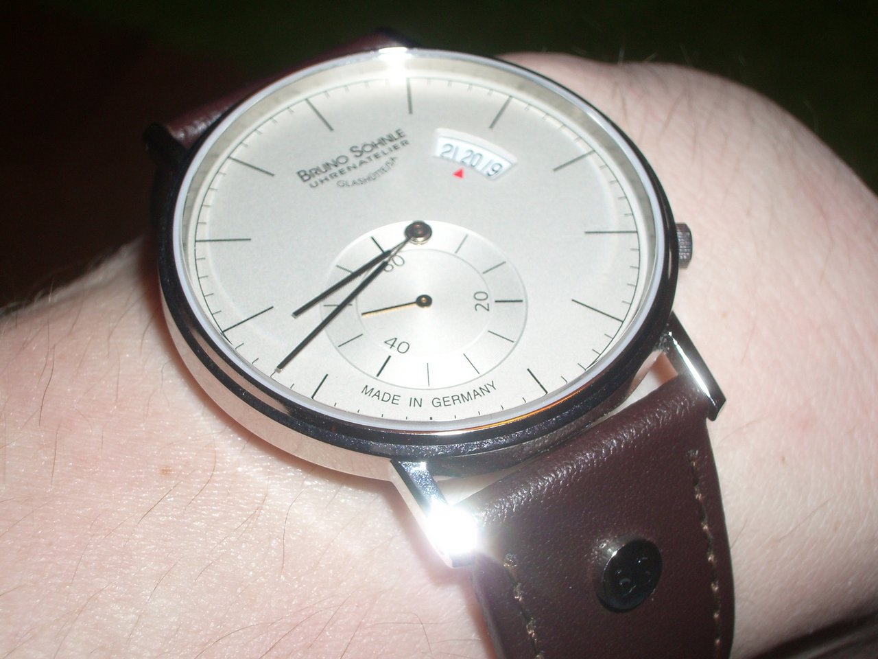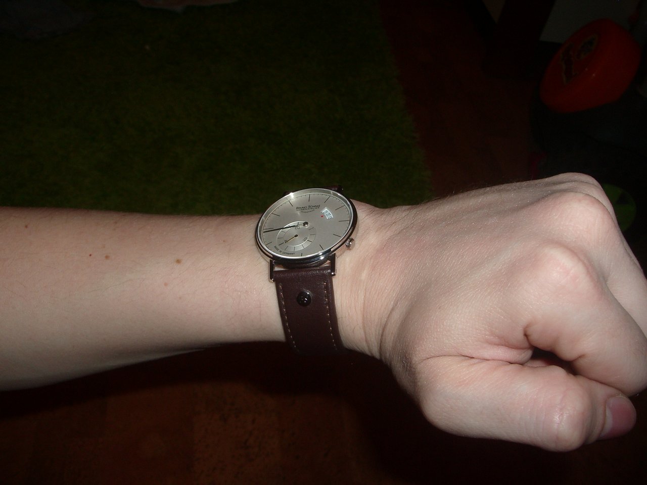 Еще с нового года моя супруга хотела мне подарить часы. Я все откладывал с выбором, хотя пару раз даже сходил померить в магазин. Понял там, что на мое тонкое запястье нужны часы поменьше, в районе 38 мм. Почти решился заказать механику Certina DS Caimano. Но потом на этом форуме (спасибо всем!) увидел ссылку на немецкие БЗ. Решил - точно они! Правда, с размером 38 тоже не сильно разбежишься, но выбор был. Выбирал между Atrium и Rondo. Остановился на последних, хотя в первых очень нравилась прозрачная задняя крышка на кварце.
