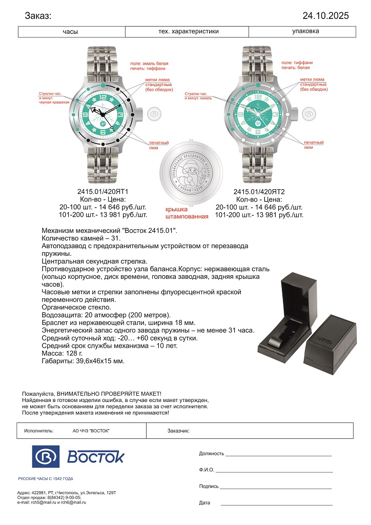 заводской магазин а далее обычное оформление и оплата онлайн покупки, доставка по РФ Почтой или СДЭК будет бесплатной, на часы распространяется полная заводская гарантия, ориентировочный срок готовности партии - первая декада декабря! Внимание: во избежание путаницы связанной с двумя вариантами оформления, привычной многим