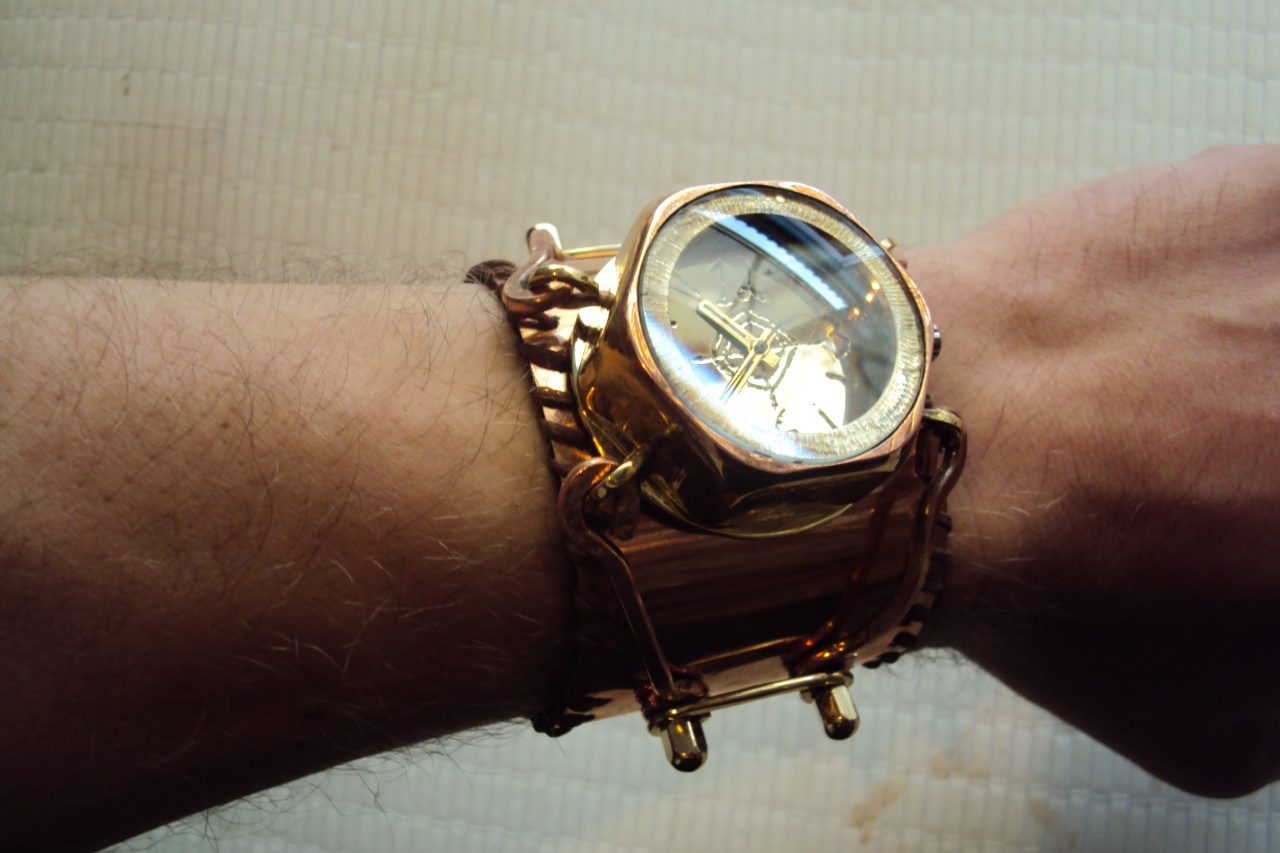Доброе время суток. Поближе познакомившись с вашим сайтом и перерыв куча инфы я понял красота не может быть только с наружи. Красота должна быть и внутри. Так я открыл новый и для себя не обычный внутренний мир механики. Я не могу вам передать мой восторг, когда я собрал часы и всё заработало! Когда секундная стрелка мелкими шагами побежала по циферблату. И каждое утро я получаю удовольствие, когда их завожу! Берёт гордость! За себя что я владею такой моделью. Теперь по порядку. Механизм от часов ракета 19к, стрелки позолота ( может заменю на самодельные ), циферблат 100% поменяю на другой пока дизайн не придумал. Пока недельку похожу сам, потом поставлю на продажу. Так как для себя я давно придумал модель, но в связи сложности всей модели каждый раз откладываю сборку. Вот моя работа, часы на механике.