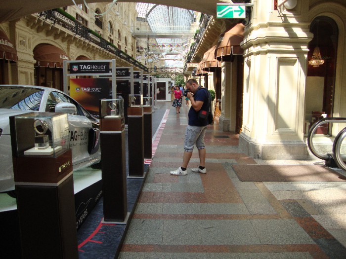 По случаю выставки в ГУМе выставлена эксклюзивная модель AUDI R8, чествующая 150-летний юбилей служения TAG Heuer идее покорения точности и высоких скоростей. В роскошном Audi R8 V10 сосредоточены все инженерные находки, накопленные за годы побед Audi на гонках в Ле-Мане. Атмосферный двигатель модели – компиляция технологий, используемых в гоночных автомобилях: таких как система смазки с сухим картером и технология непосредственного впрыска топлива FSI. Огромная мощь, потрясающая динамика разгона, ассоциирующаяся с освобождением колоссального запаса энергии, завораживающий звук двигателя… Все эти впечатления сливаются в чувство восторга от управления настоящим спортивным болидом.