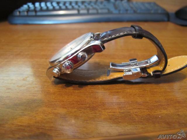 Корпус: Круглый, нержавеющая сталь, устойчивое к царапинам сапфировое стекло. Прозрачная задняя крышка с сапфировым стеклом. Диаметр: 44,00. Водонепроницаемость до 3 бар (30 м). Движение. L698 с автоподзаводом механические избиение на 28 800 колебаний в час и предоставления 46 часов запас Функции: часы, минуты. Ретроградная показывает рукой:. День в 12 часов, дата на правой стороне циферблата, малая секундная стрелка в 6 часов и 24 часа второго часового пояса на левой стороне набрать Циферблат: серебристо- закончил "ячменное зерно" с рисунком, показывая 11 черных арабских цифр, синие стальные стрелки. Браслет: Коричневый ремешок из кожи аллигатора с тройной застежкой безопасности и нажмите частей механизм открывания.