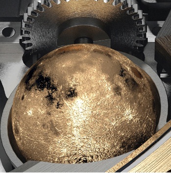 Луна в этих часах представлена не в виде привычного плоского рисунка, а в виде золотого шара.