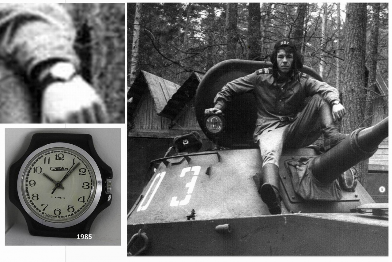 Покупал похожие в Киеве в 1984 году, служа срочку. Очень понравились тогда. Потом брал еще такие в г. Омске. Цена 18-21 рубл. Вот они на руке. Фото вторых часов на руке тоже есть г. Кировакан (Спитак) 1989г. Но плохо видно.
