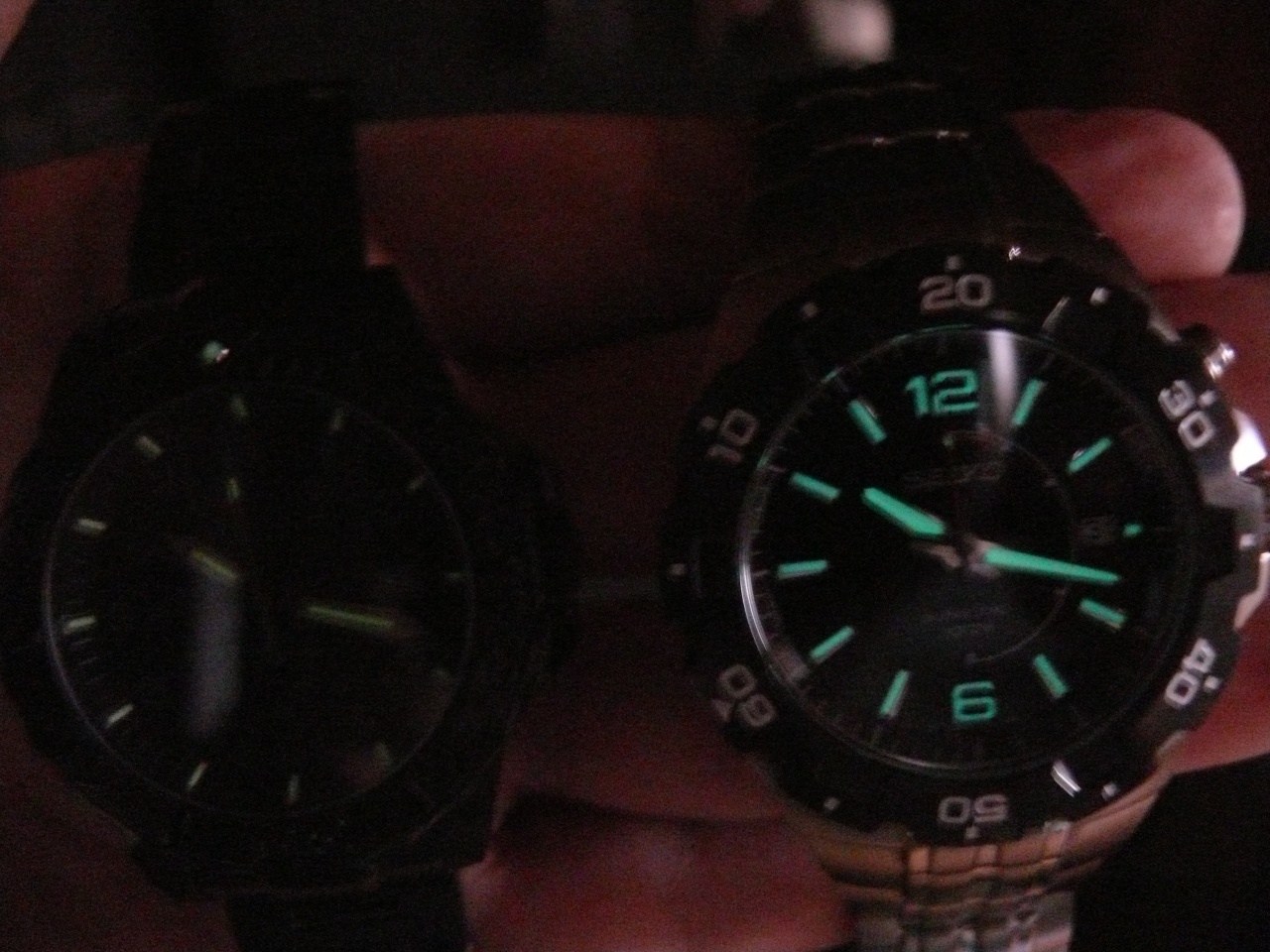 Добрый день или доброе утро всем форумчанам . Вашему вниманию хочу представить Sottomarino Lucciola с тритиевой подсветкой .Часы куплены у форумчанина , где то даже отзыв есть , хочу поделиться своими первыми впечатлениями. Часовой болезнью ранее не болел , вернее вообще не знал о существовании часов . А точнее телефон , в машине часы , в компьютере часы , везде часы.И вот как только исполнилось 40 прозрел )) Так как часы ношу не постоянно , связано с работой с красками и растворителями, то кварц основное требование.Начитавшись форума, естественно Сейко Кинетик , для меня это Тойота среди часов. Тойота для меня эталон надежности , функциональности , комфорта . По этому и Сейко )). Болезнь прогрессировала и вот уже у супруги Сейко с брюликами ))) Далее обострение и на 18 летие сына заказана Сейка спортура с будильником.потом были Раймонды , Милитаре , ну все вроде качественные часы . Ну а так как на весну совсем нет часов , да и зарплата далеко , то в глаза бросились часы неизвестной фирмы с завинчивающейся головкой ,тритиевой подсветкой ,сапфиром , вращающемся в одну сторону базелем , черным ПВД покрытием , датой ,большой секундной стрелкой , как я хотел , да еще и ценой в 150 уе, то брать или не брать вопрос не стоял .. Брать!!! Упаковка у часов неплохая , красивая оранжевая коробочка простроченная , с кнопкой . Из документов непонятные две бумажки , размером с билет на метро и шильдиком Sottomarino Lucciola.Общее впечатление от часов положительное. Стрелки четко попадают в метки. Я впервые увидел тритиевую подсветку , так как на сейко не тритий , и что могу сказать . Может я не понял что , но Сейко горит в темноте а эти не очень .. Может зарядить нужно , солнцем ) Посмотрим.На ощупь тяжелые качественные часы .Единственное что огорчило - это браслет. Браслет отвратителен во всем . В местах соединения звеньев браслета отсутствует напыление и видны , кстати сильно, желтого цвета металл . Это же присутствует и на ребрах ушек часов . Застежка браслета жидкая , фиксируется слабо .. То есть браслет напоминает то что продается во всех супермаркетах за 300 рублей. Но вообщем то часам за эту сумму простительно . Буду ставить каучук. Пока все впечатления . Позже дополню , если будет интересно Вам. Спасибо.