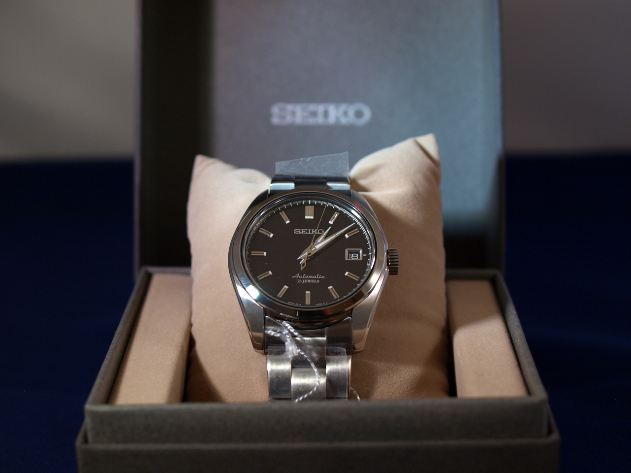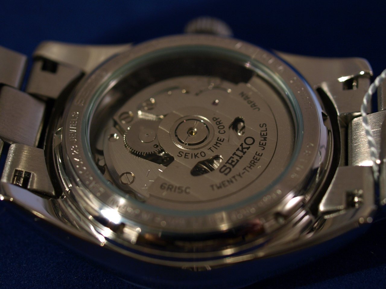 Механизм:калибр Seiko 6R15, механический, с автоподзаводом от движения руки, с возможностью механического завода, с функцией стоп-секунда; 23 драгоценных камня.