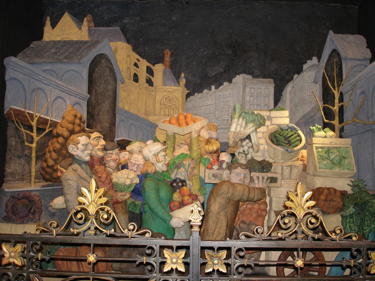 Вообще, неоднократное посещение какого-либо места имеет свои неоспоримые плюсы. Мне уже не надо было стоять 3-4 часа в очереди на Эйфелеву башню и бежать по туристическому маршруту Джоконда-Ника-Венера Милосская в Лувре. Поэтому я открыл для себя много нового: церковь Нотр-Дам Монмартр (12 века, между прочим, помнящую Жанну де Арк) и Нотр-Дамм Виктория, Св. Эсташ с замечательной картиной "овощи и фрукты покидают сердце Парижа", какой-то храмчик на Сен-Дени, в котором нашел икону Серафима Саровского. Посетил множество выставок: художественную на пл. Бастилии и там же через пару дней антикварную (где приобрел пару совершенно замечательных фарфоровых статуэток, недорого и без утрат), объединенной Европы на Гревской площади, Матисса в центре Помпиду (там же выставку современного искусства, из которого больше всего понравилась ржавая ванна с грязной текучей водой и картины, показывающие распространение китайского народа по планете)). Несколько совершенно замечательных кабачков, из которых больше всего запомнилась "Свинья с ухом", украшенная старинными изразцами и хозяином - похожим на Санта-Клауса, который пришел научить правильно есть артишок и рассказал, что бывал в 60-е годы в Москве (его фото - в полосатой шапочке на той фотографии, где кафельные изразцы кафе. Только в жизни он без шапки и накладного носа. Но борода присутствует). А еще в этот период прошел второй тур выборов, демонстрации, пикеты, ликующие толпы народа на площадях. И вещдоки, говорящие о том, что кандидаты в президенты и гондоны - это не только российские реалии, а общемировая проблема.