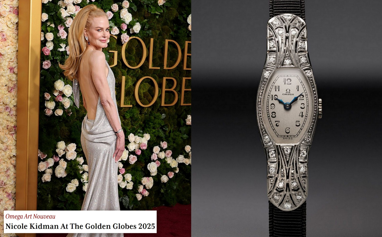 Известная тем, что носит множество винтажных вещей из архивов и музея OMEGA, обладательница премии «Оскар» Николь Кидман появилась на церемонии вручения премии «Золотой глобус» 2025 года в винтажных часах OMEGA в стиле арт-нуво 1920 года выпуска.