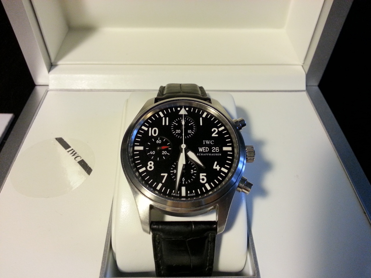 Продам IWC Fliegeruhr/spitfire chronograph ref. 3717 (IW371701). Часы куплены в августе 2011 года (гарантия от производителя до августа 2013) в очень хорошем состоянии. присутствуют легкие потертости на корпусе. ремешок ношенный. Документы в наличии. Прошу 125 000 тысяч рублей.