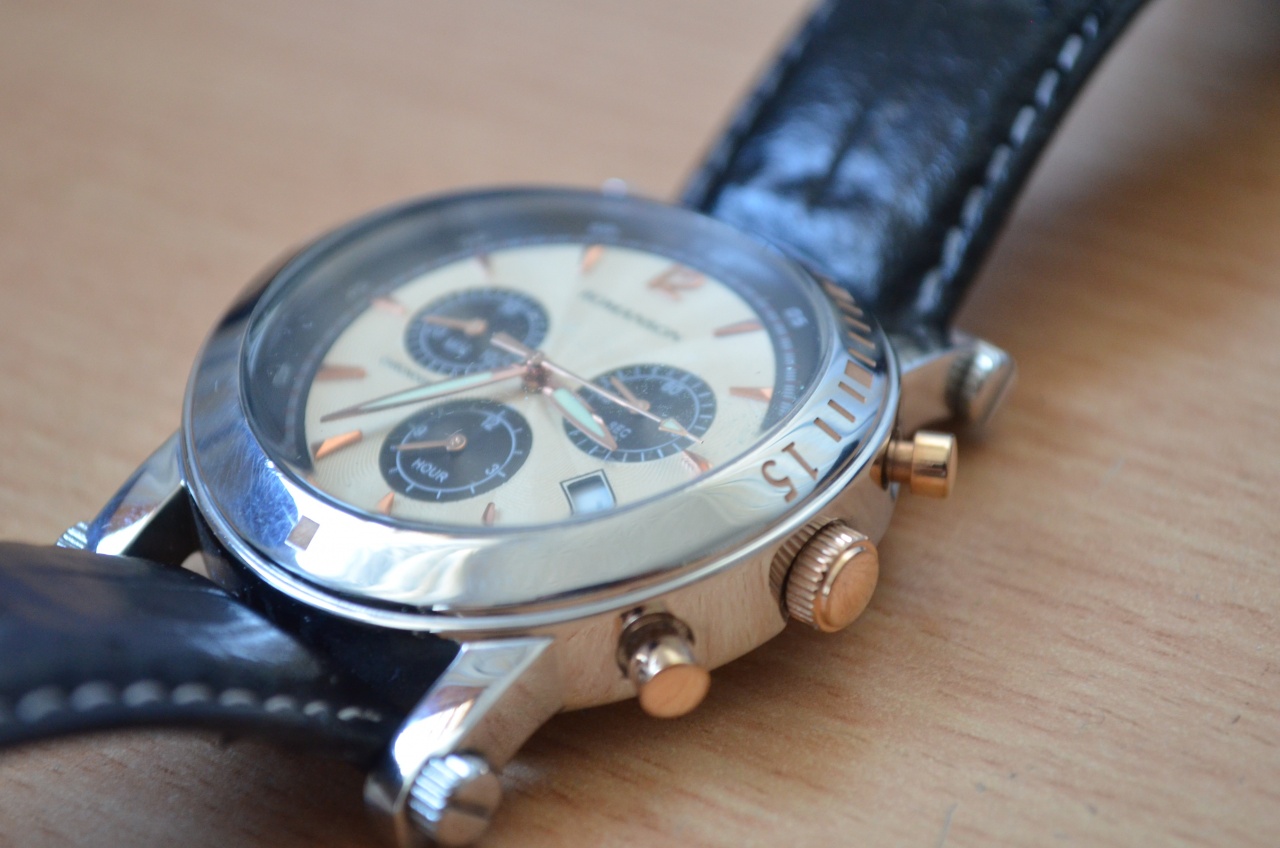 Romanson Tl6503pm - именно эти часы были подарены мне на мой день рождения еще в апреле этого года, уже после того как я начал посещать этот форум и прочитал тему о Романсонах и связанных с ними моветонах, скажу честно радости от подарка я испытал не мало и продолжаю испытывать каждый день когда ношу их. Итак, производитель Ю.Корея , механизм кварцевый, размер 45мм, материал корпуса выполнен из нерж. стали с частичным напылением PVD, ремешок кожаный, водостойкость 3 АТМ , стекло сапфир. Давно хотел хронограф , собственно имею. За пол года службы напеканий нет, за исключением ремешка, ранее опыта носки оных не было. Ремешок очень хороший , однако учитывая что в апреле у нас уже тепло , а лето выдалось на редкость жарким , от ежедневного ношения ремешок стал впитывать неприятные запахи и через 5 месяцев начал трескаться. справедливости ради должен сказать что в часах и мыл руки и мылся и в баню ходил )))) в связи с чем заказал на ебэе каучуковые, и уже установил. корпус за время ношения подвергся микро царапинам , это видно на фото, в остальном все отлично !