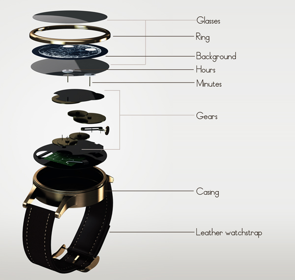Дабы родить идею оригинального аксессуара SoH (аббревиатура словосочетания Second of Happiness), дизайнер Матильда Эймп (Mathilde Ampe) мыслила от противного: в стандартных моделях стрелки часов и минут бегают по одному общему кругу. А что, если каждой выделить свой циферблат? А сами стрелки заменить кругляшами-«зрачками»?