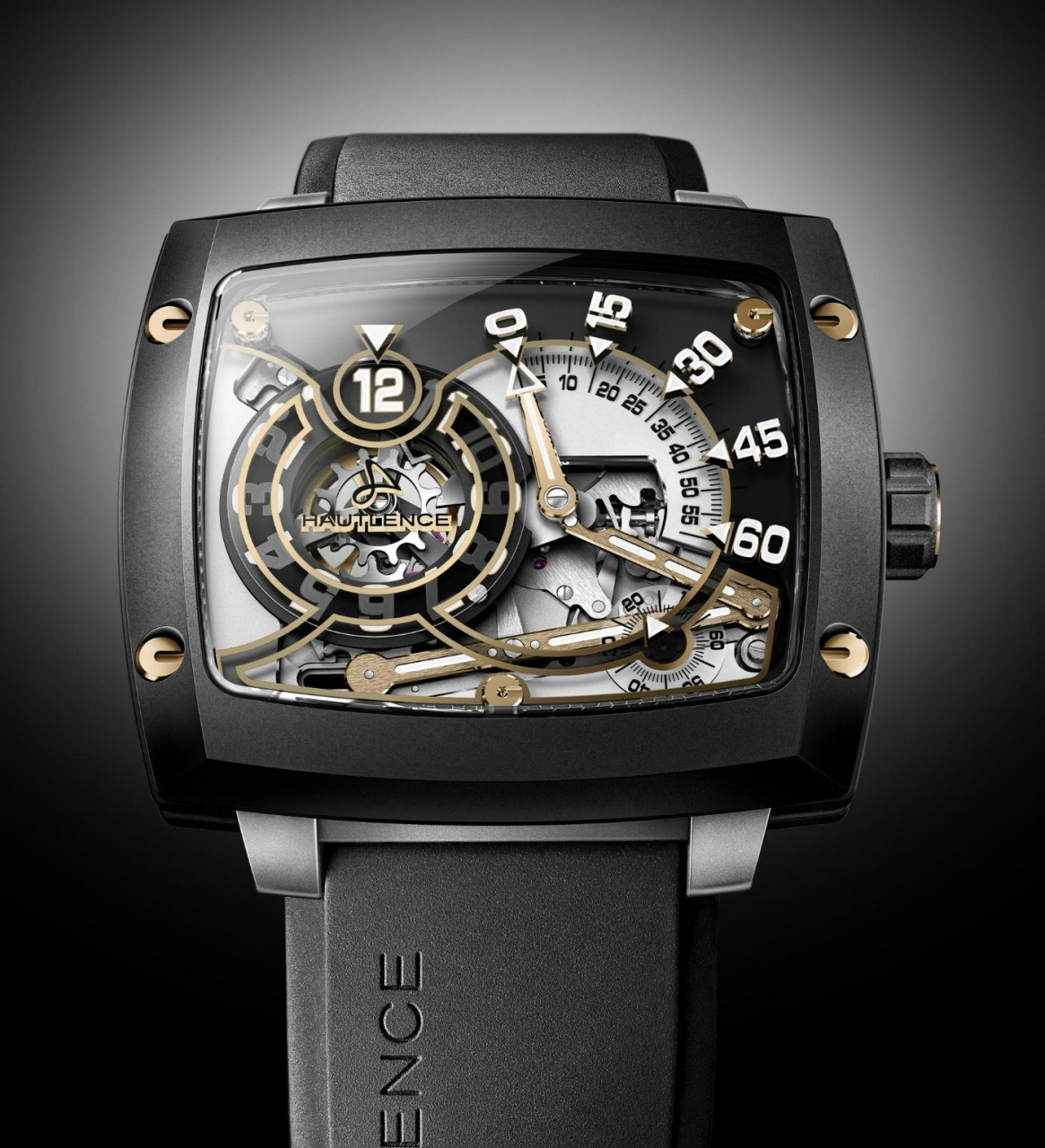 Новая модель Avant-Garde от швейцарской часовой компании Hautlence имеет подушкообразный корпус, изготовленнный из 18-каратного розового золота, титана или нержавеющей стали с черным DLC-покрытием, длиной 46 мм, шириной 42 мм, толщиной 13 мм, водонепроницаемый до 30 метров. Сапфировое стекло установлено на передней стороне корпуса (с антибликовым покрытием) и на его задней крышке. Циферблат сложный многоуровневый, с элементами, отделанными в виде сот, полупрозрачными сапфировыми пластинами.