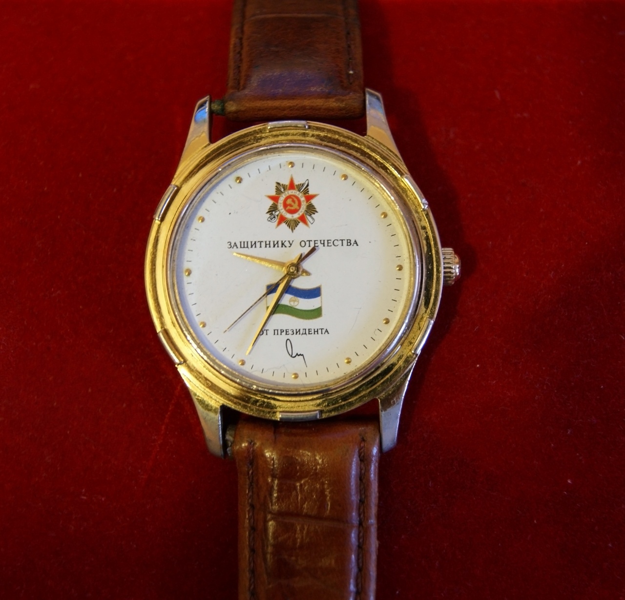 Модель часов с надписью "Защитнику Отечества" от Президента республики Башкортостан