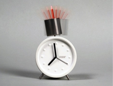 Дизайнеры Qian Jiang и Yiying Wu не стали изобретать велосипед и искать какие-то принципиально новые подходы в деле построения будильников. Придуманный ими Joinin’ Alarm Clock, не умеет прятаться от хозяина под кровать, его не надо бросать в стену чтобы выключить, да и выглядит он как самые обыкновенные часы. Но зато он предлагает хозяину самостоятельно придумать звук, под который тот хочет просыпаться. Насыпаешь в стаканчик мелочи – будет звенеть, поставишь карандаш – загремит. Бесспорный простор для творчества.