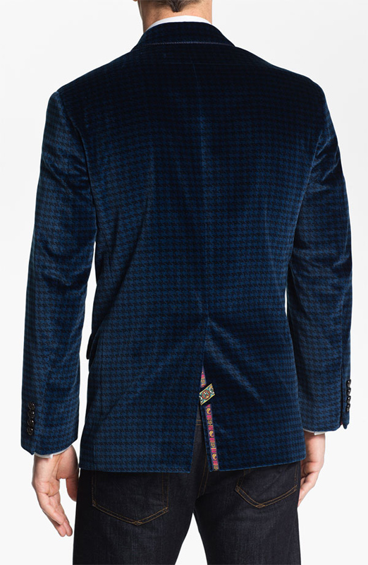 Пиджак сделан из вельвета красивейшего темно-синего цвета, с узором Houndstooth (клыки). Вельвет абсолютно натуральный, 100% хлопок, никакого полиэстра! Материал бархатный на ощупь, играет на свету. Множество классных деталей (см. фото ниже).