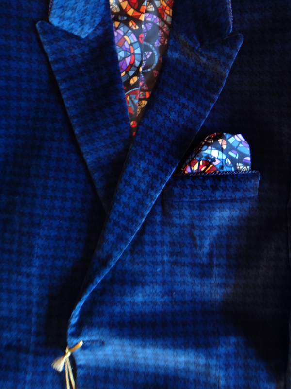 Подкладку кармана можно вывернуть, и получится выглядывающий из кармана яркий платок, сочетающийся по цвету и узору с подкладкой. Это называется "built-in pocket square":