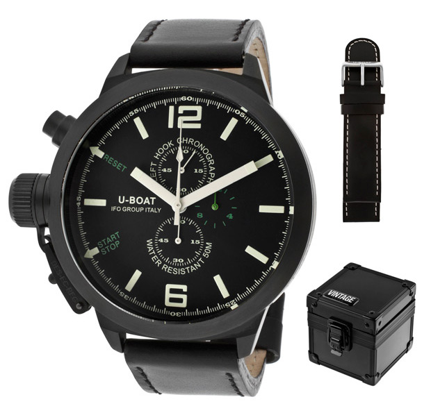 Не знаю, откуда они их выкопали, но это модели из числа самых первых поколений U-boat'ов, то есть модельный ряд примерно 8-9 летней давности, китайского производства(!), на мийоте(!), с минеральными стеклами(!) и в целом достаточно посредственным качеством сборки и отделки. А также забавно отметить совершенно неподобающую водозащиту для часов подобного стиля "подводной" тематики – WR в этих моделях всего 50м, то есть в этих часах грубо говоря можно мыть руки под краном, но плавать, и тем более нырять, нет.