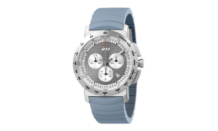 Серебристый циферблат. Основной цвет: серебристый. Каучуковый ремешок серебристо-серый. Люминесцентные стрелки, секундомер с функцией разделения времени измерения и тахометр. Закалённое сверхтвердое сапфировое стекло с антибликовым покрытием для обеспечения чёткого обзора. Каучуковый ремешок с пряжкой из нержавеющей стали. Диаметр: 42 мм. Швейцарский механизм. Водонепроницаемость до 50 метров.