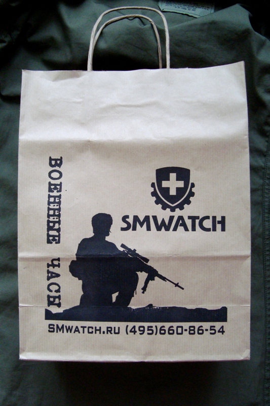 www.smwatch.ru. Часы после покупки сразу положили в фирменный пакет, хотя можно было обойтись и без него, так как упаковочной коробкой часов является водонепроницаемый ударостойкий кейс.