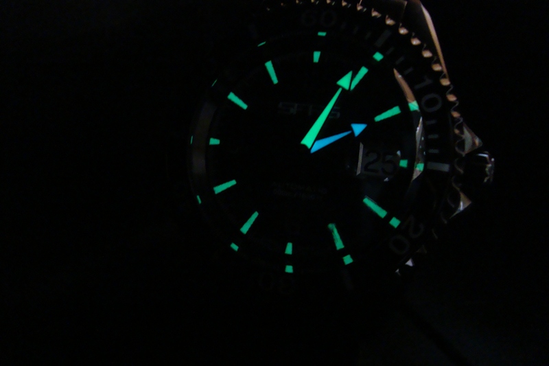 Очень порадовала продолжительность свечения индексов и стрелок. С 22:00 до 06:00 в полностью тёмной комнате полная видимость. Из минусов, то что где-то с середины ночи, когда интенсивность свечения уменьшается, синяя стрелка светится также как и зелёная.