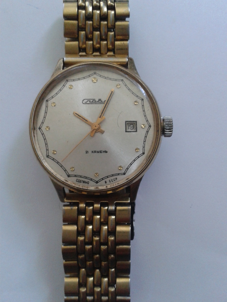 Спасибо за информацию! Да корпус часов - позолота, браслет кажется родной, но вроде не позолоченный, а как узнать позолоченный браслет или нет, при внешнем осмотре никаких проб и надписей, кроме цены, не заметил! Какова цена данных часов, часы в исправном состоянии. Кто может посоветовать литературу по уходу за этими часами? И в каком уходе они вообще нуждаются?