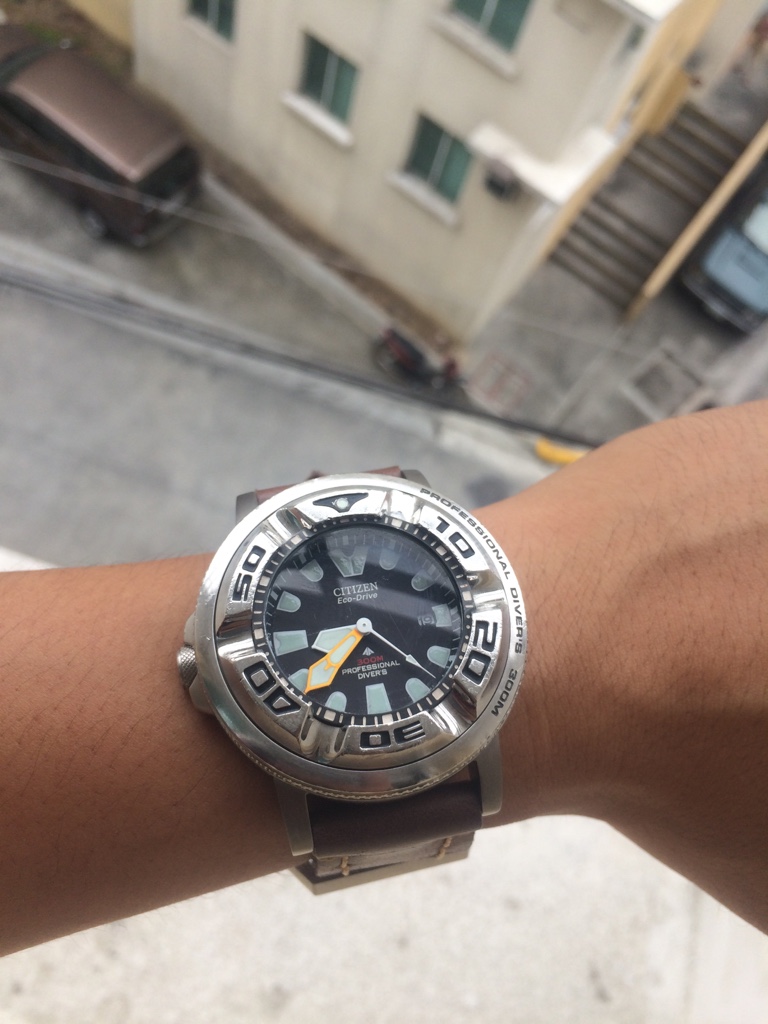 2) Привычное положение часов подальше от кисти лично для меня оказалось неприемлемым для столь большого корпуса. Часы сидели комфортно лишь в положении ближе к косточке, но возникла проблема того, что стала мешать ЗГ. Перекинул часы на правую руку, и после 2 недель носки на правой, оказалось, что это вполне удобно - ЗГ абсолютно не мешает, более удобная посадка(правая рука оказалась чуть больше левой). Первую неделю бил часы обо всё подряд, но затем приноровился, выработался тот же рефлекс, что и на левой, т.е. интуитивно начинаешь отодвигать руку от места потенциальной опасности для часов.