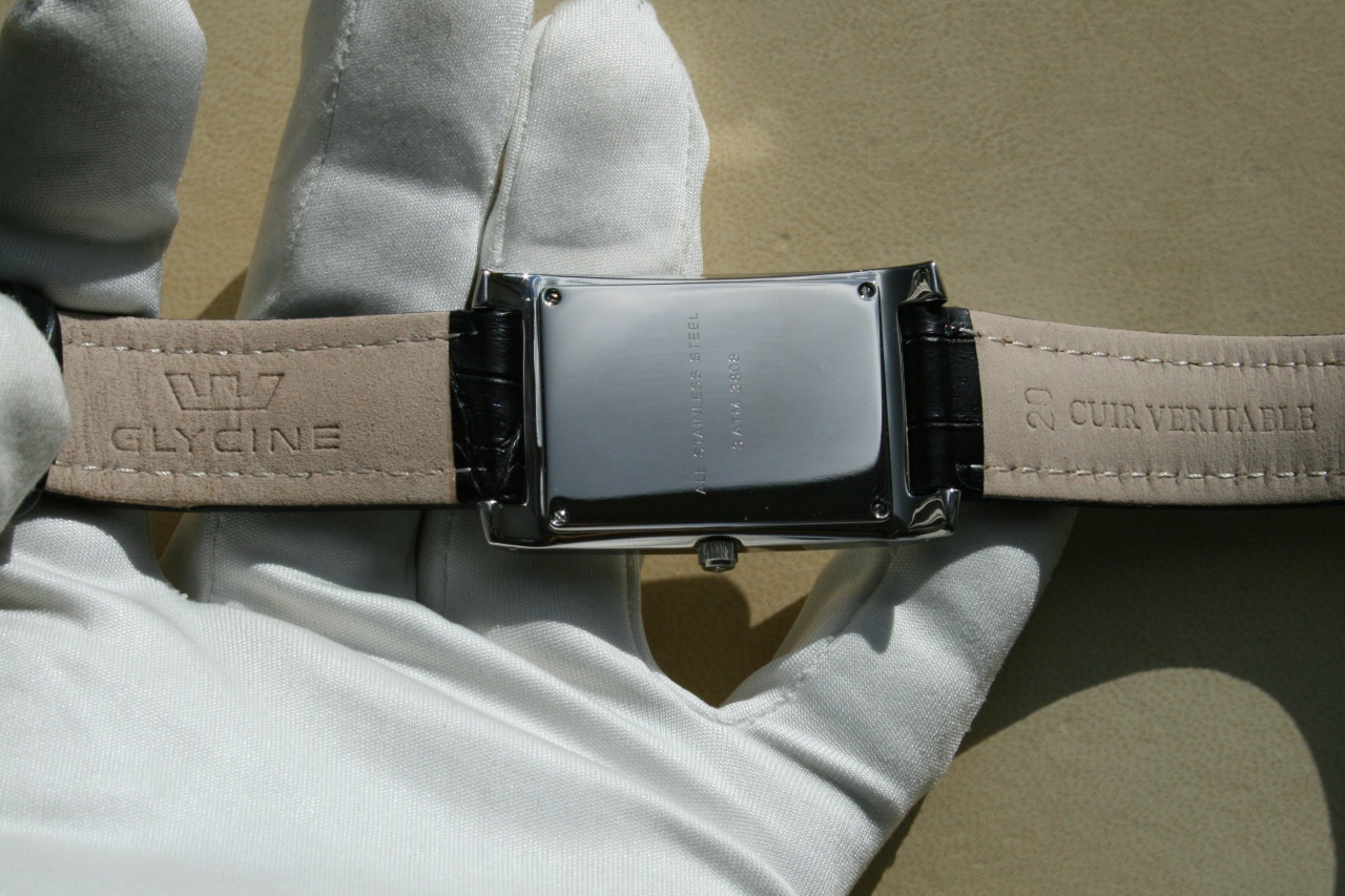 <<< [танк] GLYCINE RETTANGOLO ** белый циферблат ** черная кожа ** метки-палочки >>>