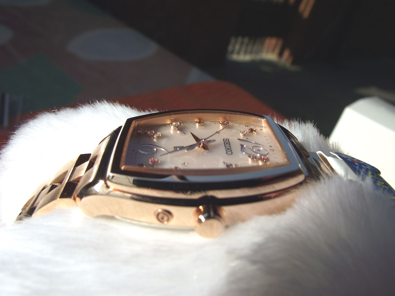 Собственно для супруги выбираем изящные часики с позолотой, выбор пока остановился на Seiko SSVW042 (сапфир, радиосинхронизация в том числе из Германии, размер 37x24x9mm, элементы Сваровски)