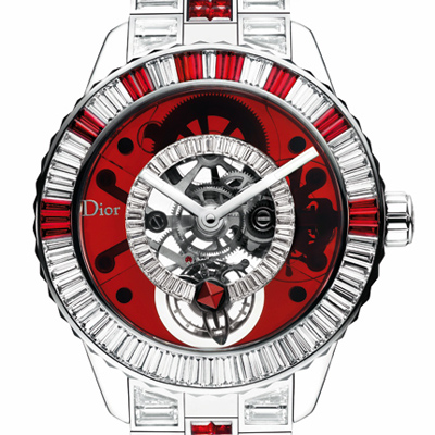 Диски skeletonization сделаны уникально, Christal Tourbillon Diamonds напоминают рулетку в казино. Напоминают не только дизайном и палитрой красного Tourbillon – ставки на них делаются не менее высокие, чем ставки в казино. Цена уникальных часов Dior составила 1,3 млн. швейцарских франков. И неслучайно Dior Christal Tourbillon вместе с каждым алмазиком и рубинчиком были вознаграждены на Geneva Grand Prix d’Horlogerie 2009.
