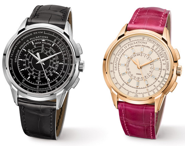 • 5975R – тираж 400 единиц – 55 000 CHF – корпус из розового золота 18к, серебристо-опаловый циферблат с черными шкалами, блестящий темно-коричневый ремешок из кожи аллигатора.