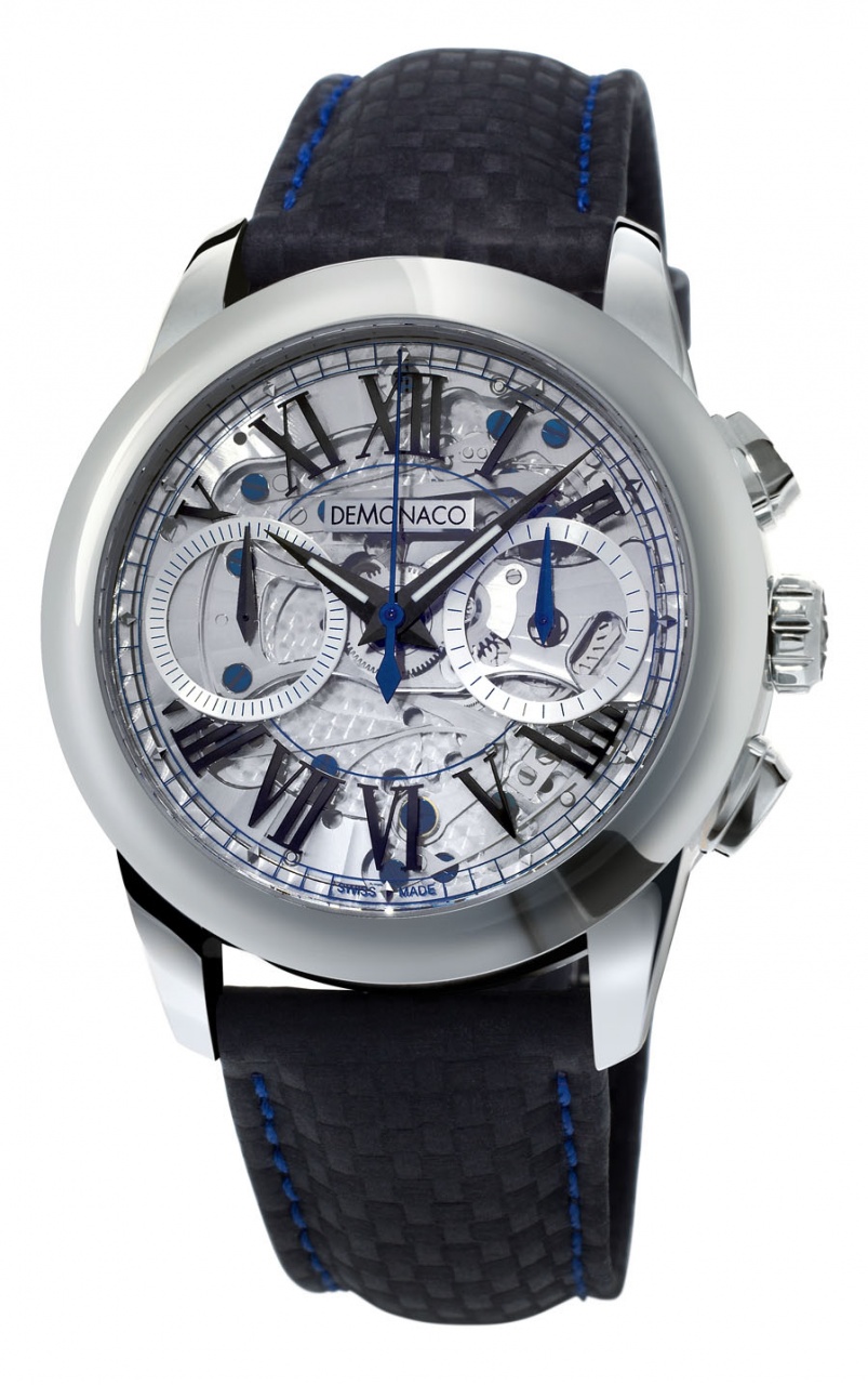 Круглый корпус новинки, диаметром 42,0 мм, водонепроницаемый до 30 метров. На торце рифленой заводной головки, расположенной на 3 часах, выгравирован логотип бренда Ateliers deMonaco. Пушеры хронографов размещены на 2 и 4 часах. Сапфировое стекло установлено на передней стороне часового корпуса (с антибликовым покрытием) и на его завинчивающейся задней крышке. Циферблат полностью выполненный из прозрачного сапфира, с накладными ромбовидными часовыми маркерами, черными римскими цифрами, стрелками (в том числе все, кроме секундной хронографической, выполненные в стиле Dauphine). Модель оснащена мануфактурным швейцарским автоматическим механизмом Ateliers deMonaco dMc-760, на 32 камнях, с балансовой частотой 28800 полуколебаний в час (4 гц), 38-часовым запасом хода, функциями индикации часов, минут (посредством соответствующих центральных стрелок), секунд (на соответствующем малом боковом циферблате, расположенном на 9 часах), а также с flyback-хронографом (центральная секундная стрелка и круглый аналоговый 30-минутный счетчик, расположенный на 3 часах). Калибр отменно отделан и декорирован.
