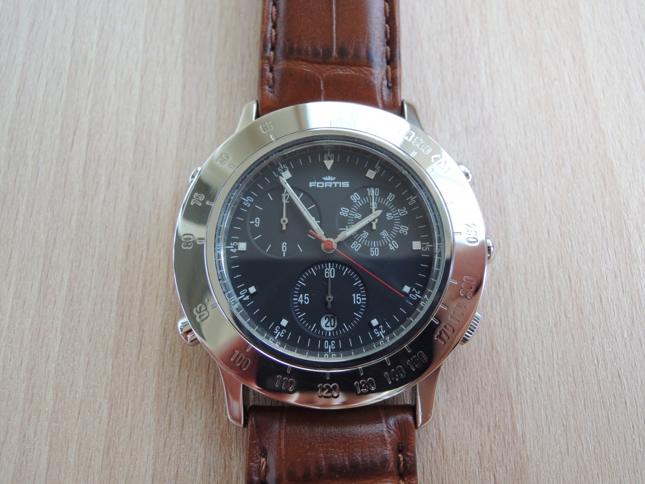 Предлагаю Вашему вниманию весьма редкую модель хронографа от Fortis. Помимо стандартных функций хронографа и тахиметрической шкалы, часы имеют встроенный будильник.