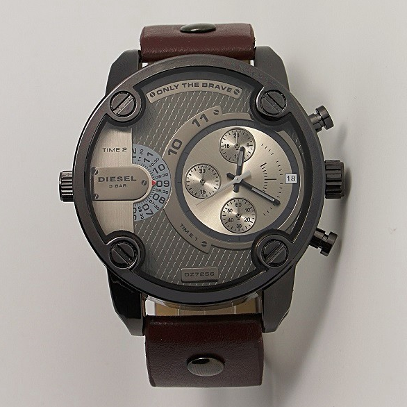 Хронограф. Индикация даты. Две временные зоны. Корпус выполнен из нержавеющей стали с IP покрытием. Стрелки с люминесцентным покрытием. Кожаный браслет. Диаметр 51 мм.