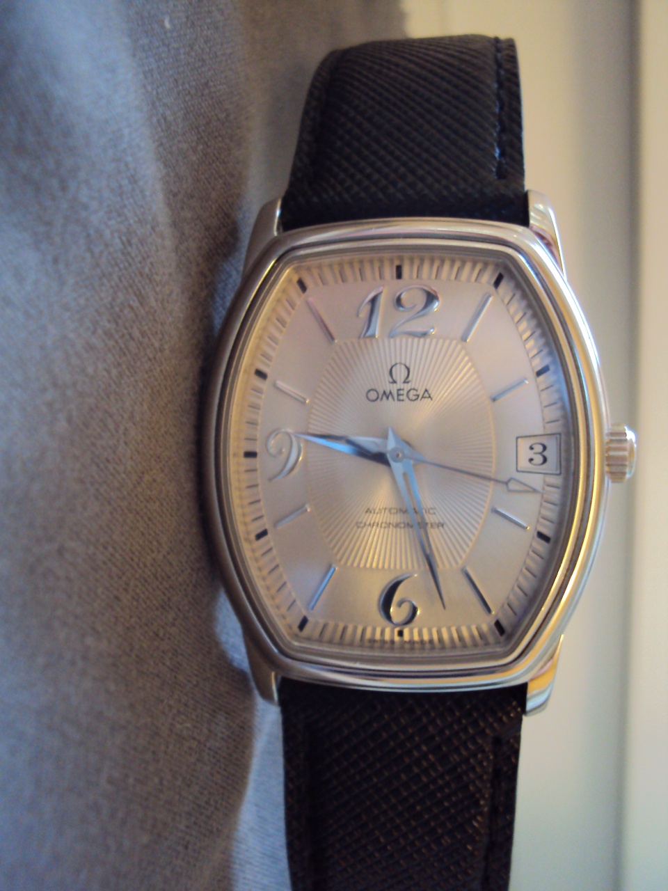 Продаю мужские наручные часы Omega De Ville Prestige хронометр (реф. 4803.31.02). Классические механические часы с системой автоматического подзавода, 23 камня, калибр 1120, детали механизма покрыты родием. Корпус выполнен из нержавеющей стали, циферблат серебристый с датой. Стойкое к царапинам сапфировое стекло с антибликовым покрытием, твердостью 2200-2300 по Викерсу. Водозащита 30 WR. Браслет черный кожаный (оригинал, куплен в феврале в официальном магазине Omega) с клипсой. Полный комплект: фирменная коробка Omega, фирменная сервисная книжка и инструкция на русском языке, Гарантийная карточка Omega.